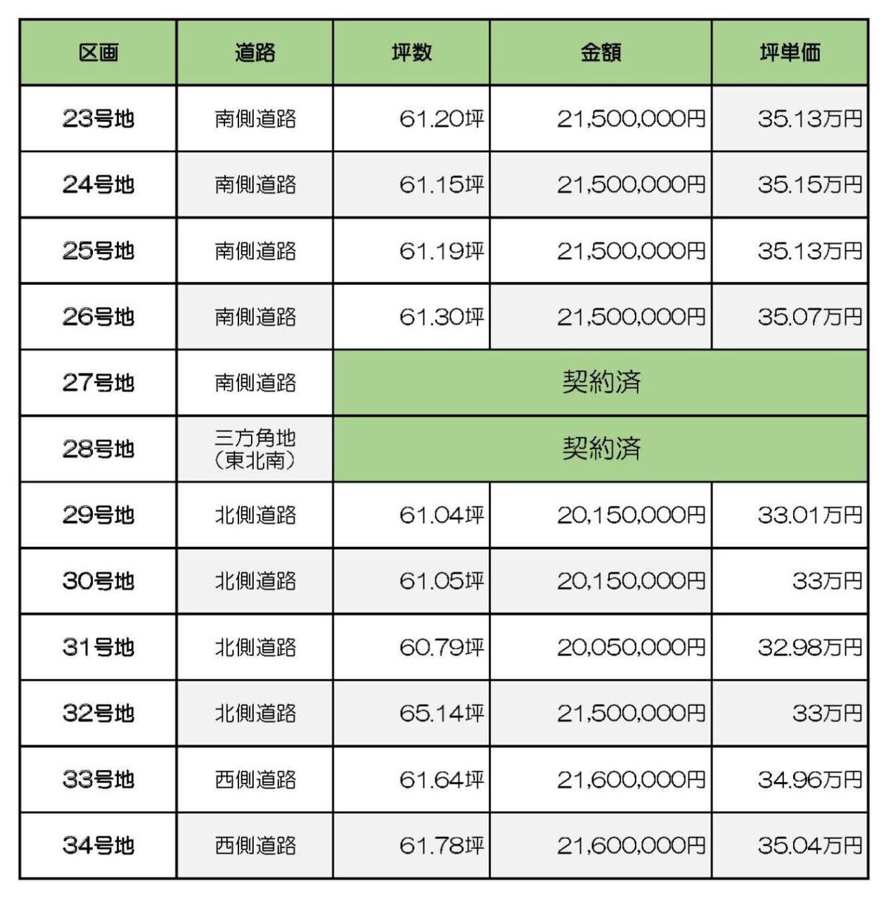 2期販売 価格一覧