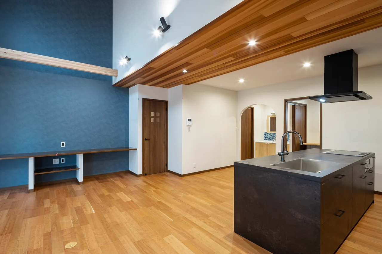 カウンタータイプのアイランドキッチンが自然と会話を生み、日々のひとときをより豊かに。