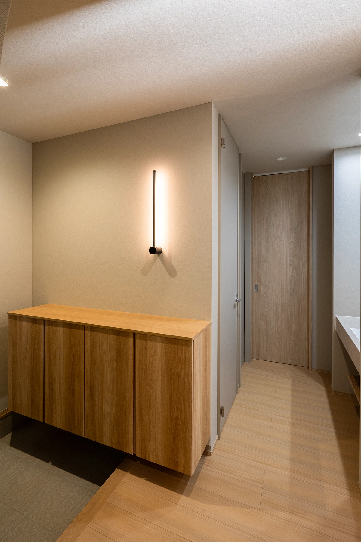 間接照明がやわらかな光を広げ、リラックスできるあたたかな雰囲気を演出します。